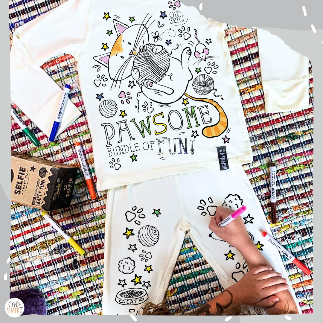 I’m mega excited to be able to introduce the new Oh Erik Kids Colour-in pyjamas!